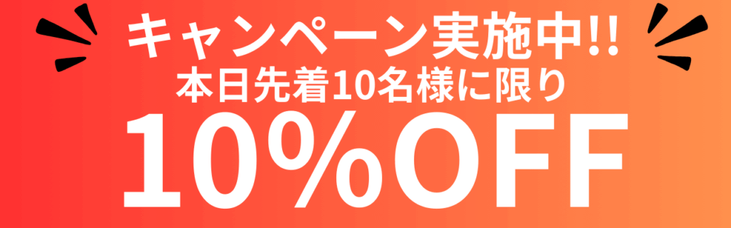 本日限定 ! 先着10名様に限り10%OFF