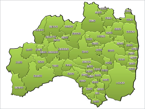 会津坂下町、会津美里町、会津若松市、浅川町、飯舘村、石川町、泉崎村、猪苗代町、いわき市、大熊町、大玉村、小野町、鏡石町、葛尾村、金山町、川内村、川俣町、喜多方市、北塩原村、国見町、桑折町、郡山市、鮫川村、下郷町、昭和村、白河市、新地町、須賀川市、相馬市、只見町、伊達市、棚倉町、玉川村、田村市、天栄村、富岡町、中島村、浪江町、楢葉町、西会津町、西郷村、二本松市、塙町、磐梯町、檜枝岐村、平田村、広野町、福島市、双葉町、古殿町、三島町、南会津町、南相馬市、三春町、本宮市、柳津町、矢吹町、矢祭町、湯川村